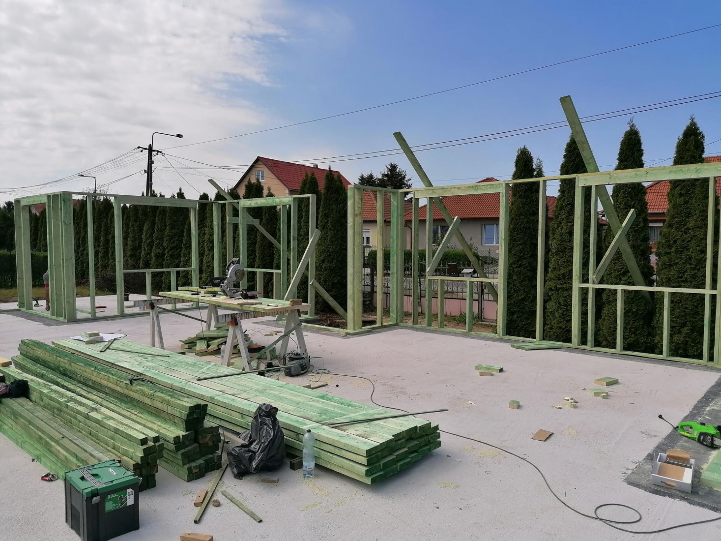 A szerkezetet korszerű, bevált technológiával építjük, gondosan kezelt faanyagok felhasználásával. A cél a stabil, jól szigetelt és hosszú élettartamú épület.